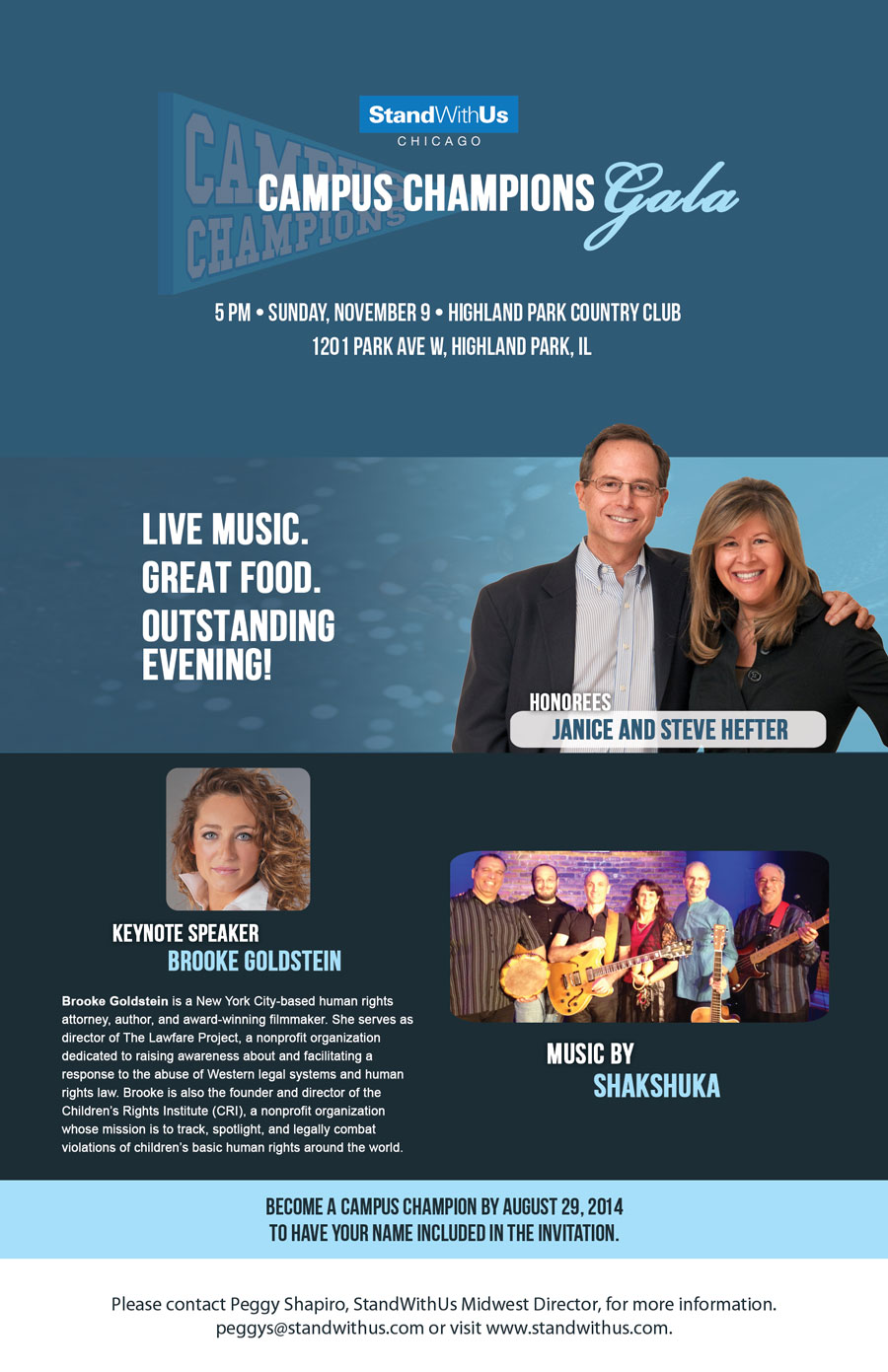 Contact Peggy Shapiro, StandWithUs Midwest Director for more information