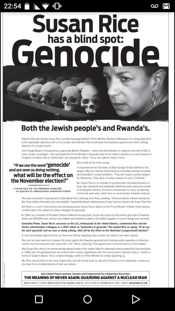Click below to enlarge New York Times Ad, Susan Rice has a blind spot: Genocide