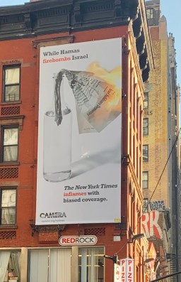 Massive billboard outside ‘New York Times’ office accuses paper of anti-Israel incitement