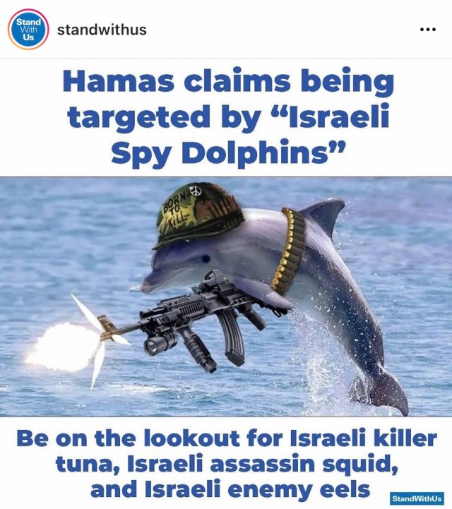 Hamas suspects Israeli dolphins are up to something fishy. The militant Islamist group claimed in a video posted by its military wing, the Al-Qassam Brigades, to have captured a heavily armed Israeli dolphin off the coast of Gaza, according to i24 News. “Killer Zionist dolphins exist, according to a Hamas publication,” tweeted Joe Truzman, a researcher for Long War Journal and the Foundation for Defense of Democracies think tank. “Abu Hamza explains that a member of Hamas’ Frogman unit who was killed by Israel during the May conflict found the killer dolphin. The device the alleged killer dolphin was wearing is shown in the publication,” he added. READ MORE